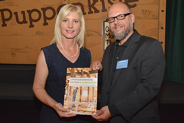Während der Bayerischen Klimawoche 2015 hat der bayerische Zimmererverband seine neue Unterrichtsbroschüre vorgestellt. Mit ihr soll in Schulen für den Beruf des Zimmerers geworben werden.