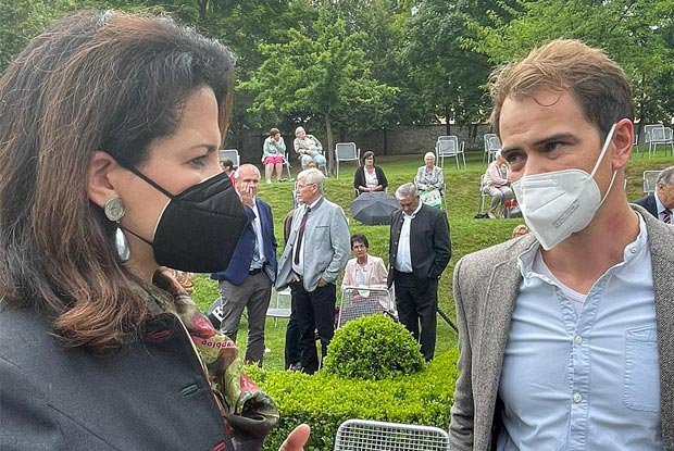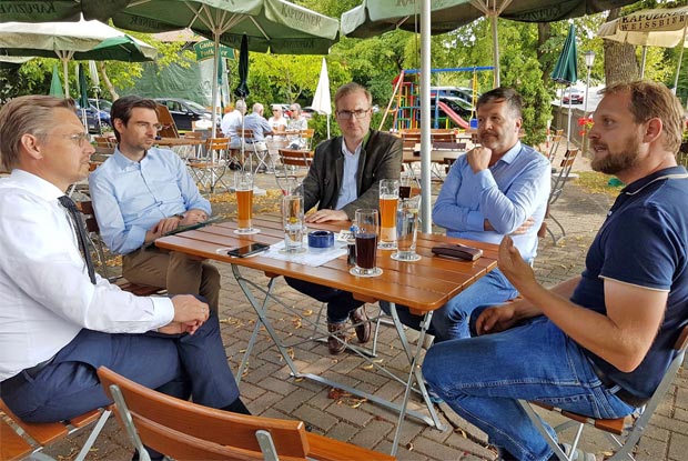 Im Biergarten wurde die Baustellenbesichtigung mit den Politikern nachbesprochen.