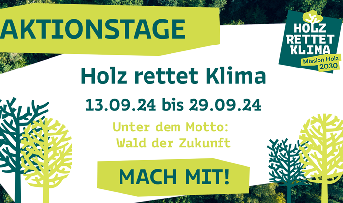 Vom 13. bis 29. September finden die Aktionstage der Initiative HOLZ RETTET KLIMA statt. Die Idee ist ganz einfach: Machen Sie mit und laden Sie Politik und Gesellschaft ein, die  Branche und die Initiative kennenzulernen.