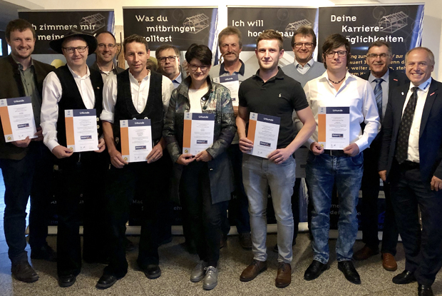 Zwölf Mitgliedsbetriebe der Zimmerer-Innung Cham sind am 22. Mai 2019 mit dem Siegel Meisterhaft des bayerischen Zimmererverbands ausgezeichnet worden.