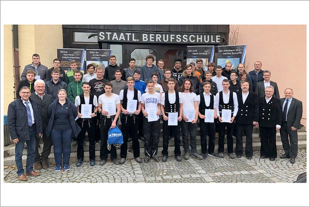 Am 8. November 2019 haben 34 angehende Zimmerer ihr Berufsgrundschuljahr in Furth im Wald begonnen. Dort wurden sie offiziell begrüßt - unter anderem vom Schwandorfer Obermeister Johann Fischer.