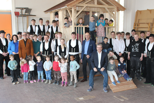 Die Verlosung des Kindergartenspielehaus, seit 1993 alljährlich angefertigt von Schülern des Berufsgrundschuljahres der Zimmerer an der Berufsschule in Furth im Wald, findet immer wieder große Resonanz.