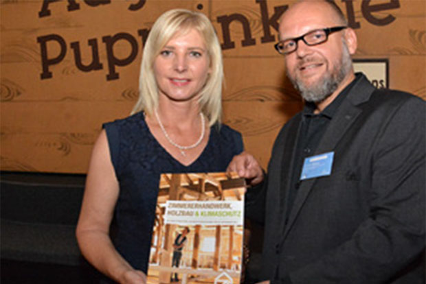 Während der Bayerischen Klimawoche 2015 hat der bayerische Zimmererverband seine neue Unterrichtsbroschüre vorgestellt. Mit ihr soll in Schulen für den Beruf des Zimmerers geworben werden.