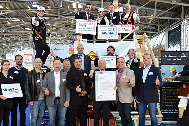 Arbeitssicherheit geht vor: Deshalb haben der bayerische Zimmererverband und die BG BAU die Kampagne „Wir zimmern sicher! Initiative für den Holzbau“ gestartet. Dabei werden wichtige Hilfsmittel zur Arbeitssicherung vorgestellt. Außerdem soll das Bewusstsein der Zimmerer für sicheres Arbeiten geschärft werden.