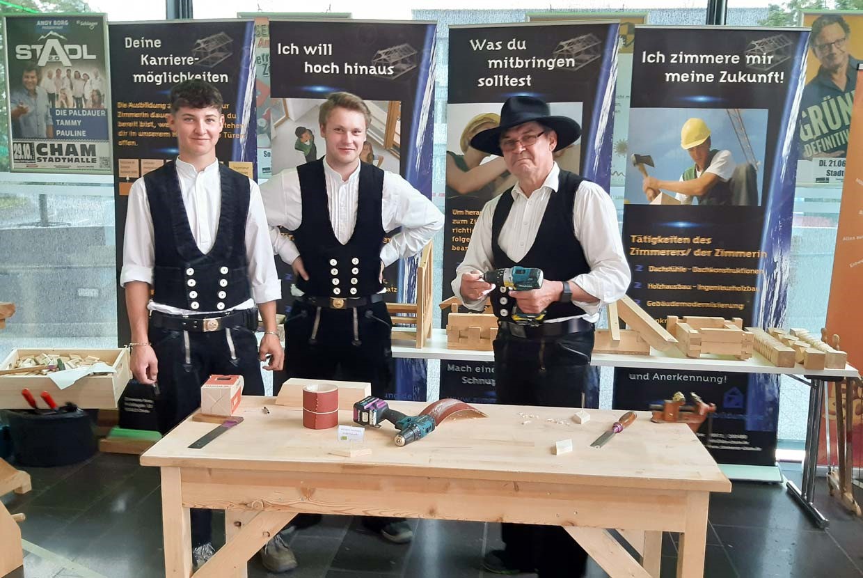 Nach zwei Jahren Corona-Pause fand am 1. und 2. Juni 2022 die Ausbildungsmesse wieder in Präsenzform in der Chamer Stadthalle statt. Auch die Zimmerer-Innung Cham war mit einem Informationsstand bei der Messe vertreten, um die Schüler*innen über den Ausbildungsberuf des Zimmerers zu informieren.